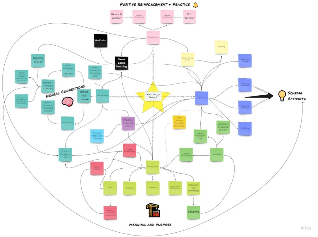 I really enjoy building a mind map when I am exploring a topic. Developing an overarching question to investigate really helps to focus my research, while creating a mind map requires a high level of analysis in order to identify and explain the relationships between concepts. Mind maps provide a great visual to demonstrate conceptual understanding of a topic, and highlight how learning is a process of building upon our prior knowledge and that deep learning involves more than just memorization.